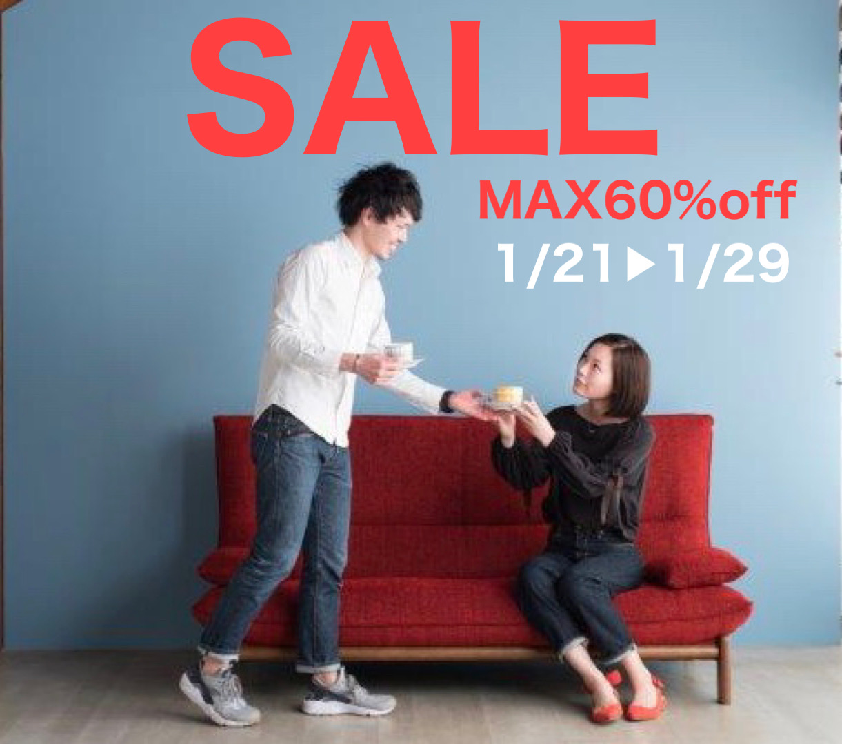 いつもご愛顧誠にありがとうございます。 1月21日(土)~29日(日)まで、セールを開催いたします。 展示商品大幅入れ替えの為 国産商品を中心にセレクトしたソファ、ダイニング、TVボード、ベッドなど、長くお使いいただける高耐久高品質なアイテムを現品特別価格(最大60%OFF)にてご提供させていただきます。 もちろん、サイズやカラーを選びいただけるオーダー家具もセール価格にてお求めいただけます。 スタッフ一同心よりお待ちしております。